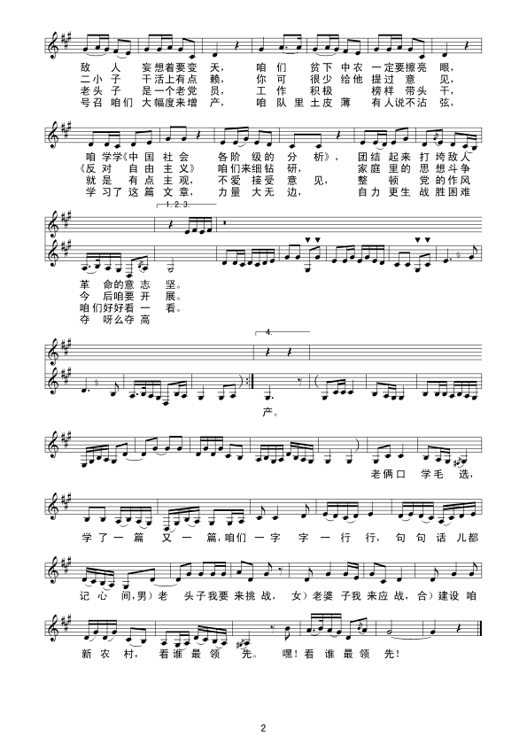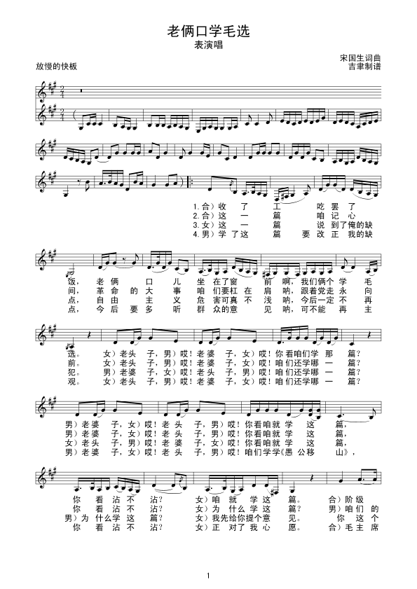 老俩口学毛选 五线谱 曲谱 歌谱