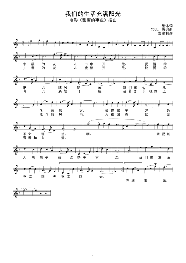 我们的生活充满阳光 五线谱 曲谱 歌谱