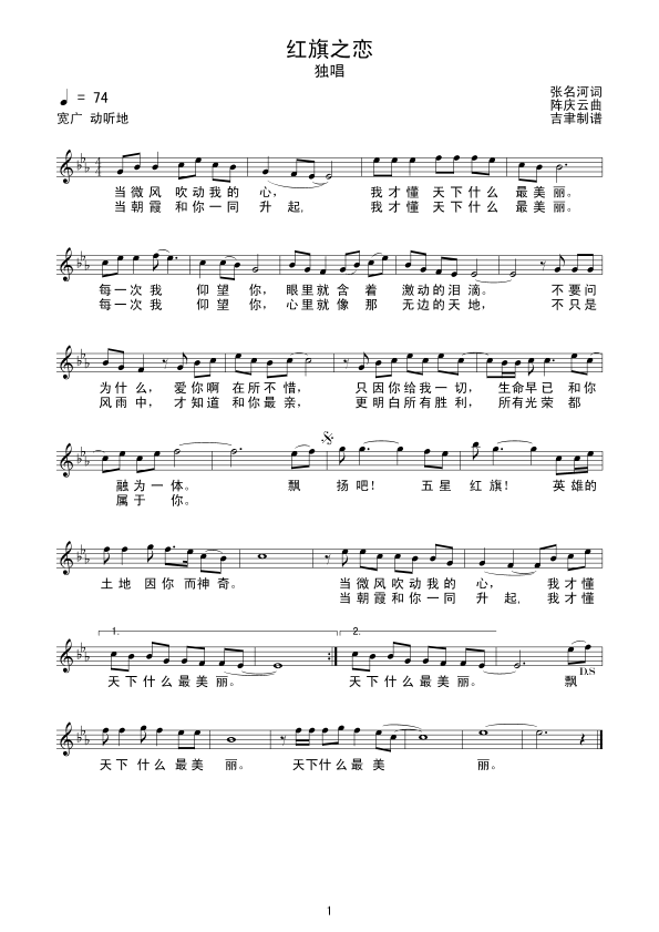 红旗之恋 五线谱 曲谱 歌谱