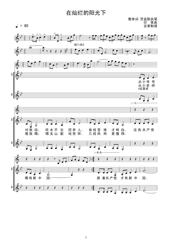 在灿烂的阳光下 五线谱 曲谱 歌谱