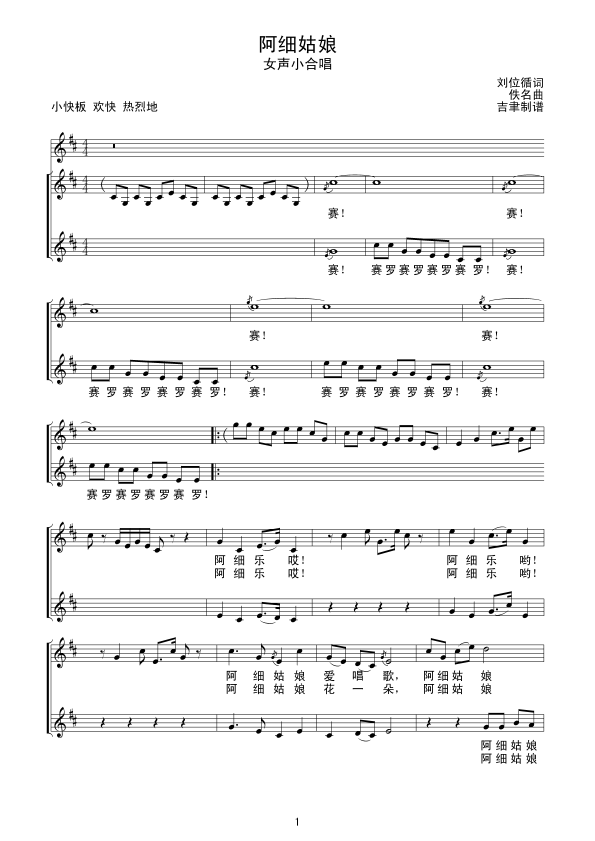 在灿烂的阳光下 五线谱 曲谱 歌谱