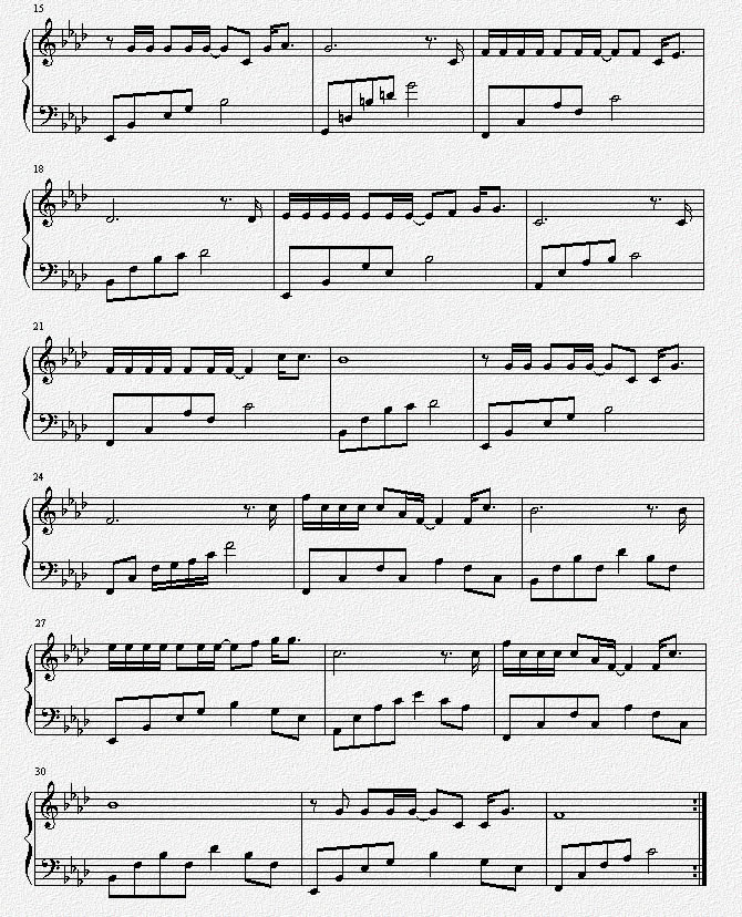 献给爱丽丝 五线谱