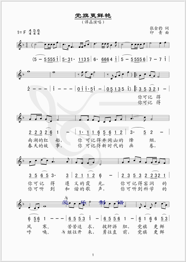 党旗更鲜艳 五线谱 曲谱