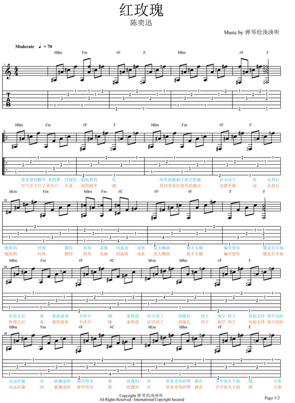 红玫瑰 吉他谱