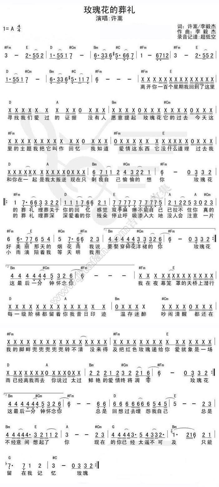 玫瑰花的葬礼 吉他谱
