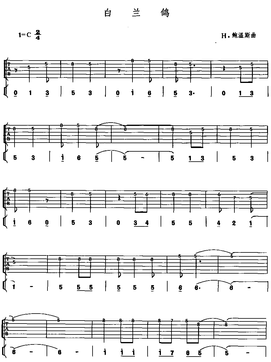 白兰鸽 吉他谱