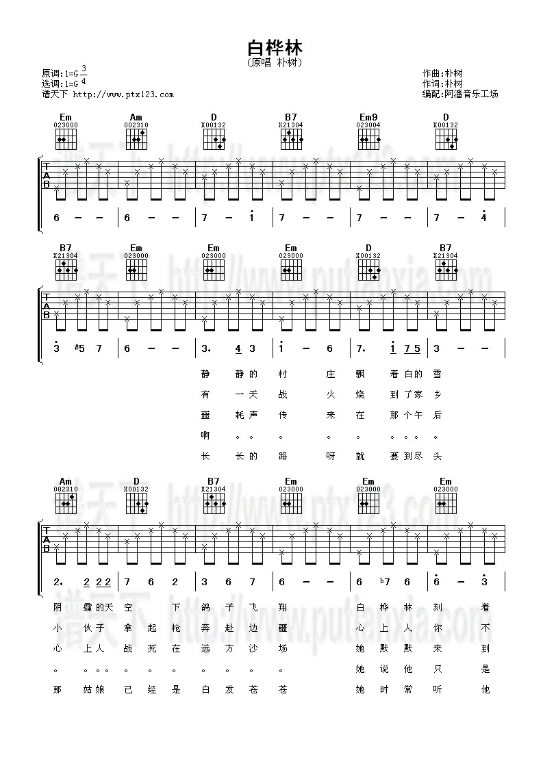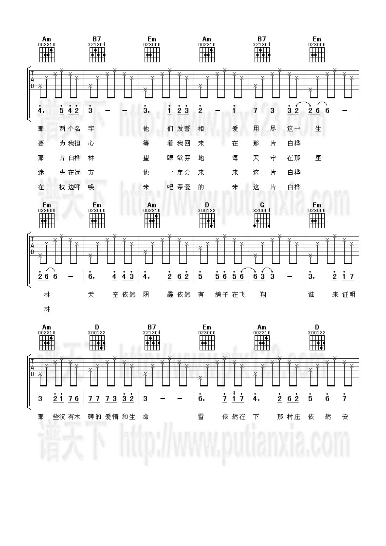 白桦林 吉他谱