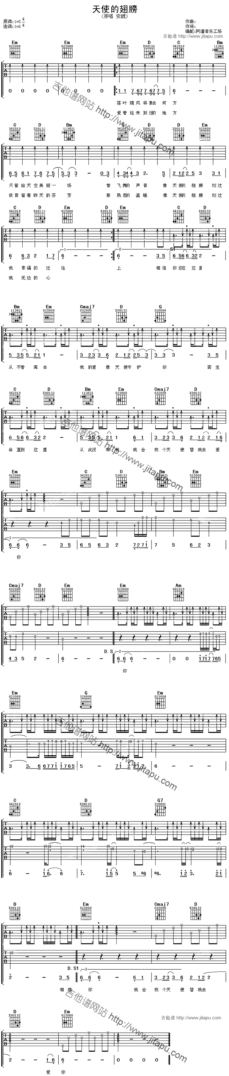 天使的翅膀 吉他谱 六线谱