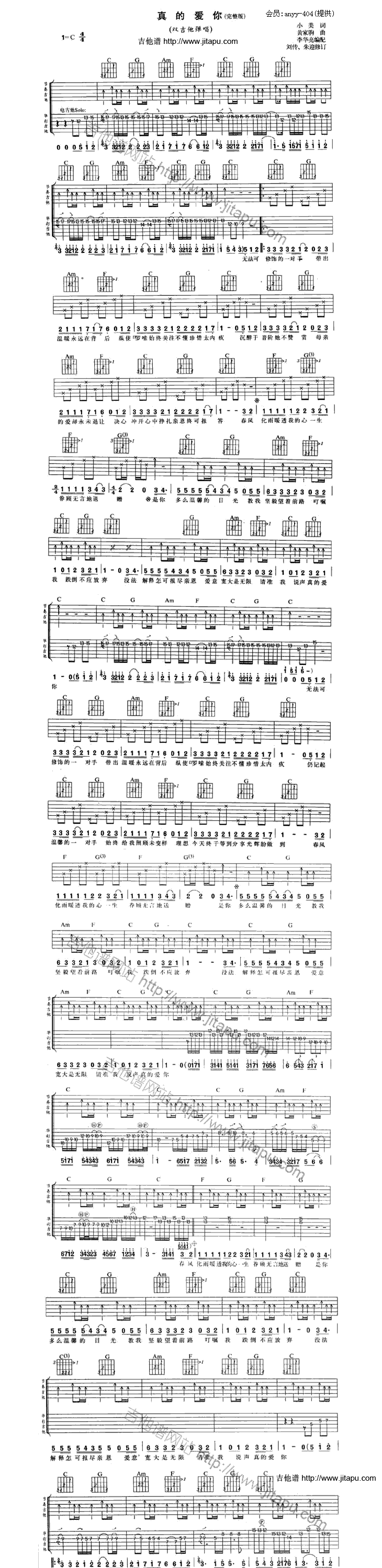 真的爱你 吉他谱 六线谱