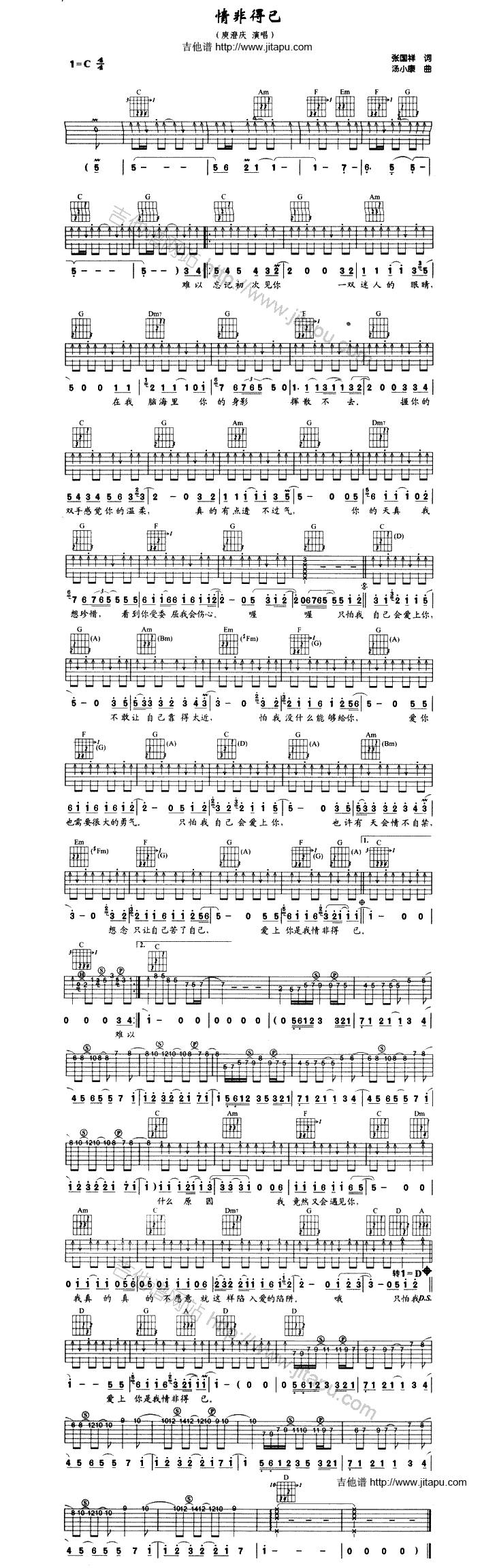 情非得已 吉他谱 六线谱