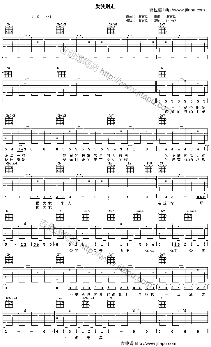 爱我别走 吉他谱 六线谱