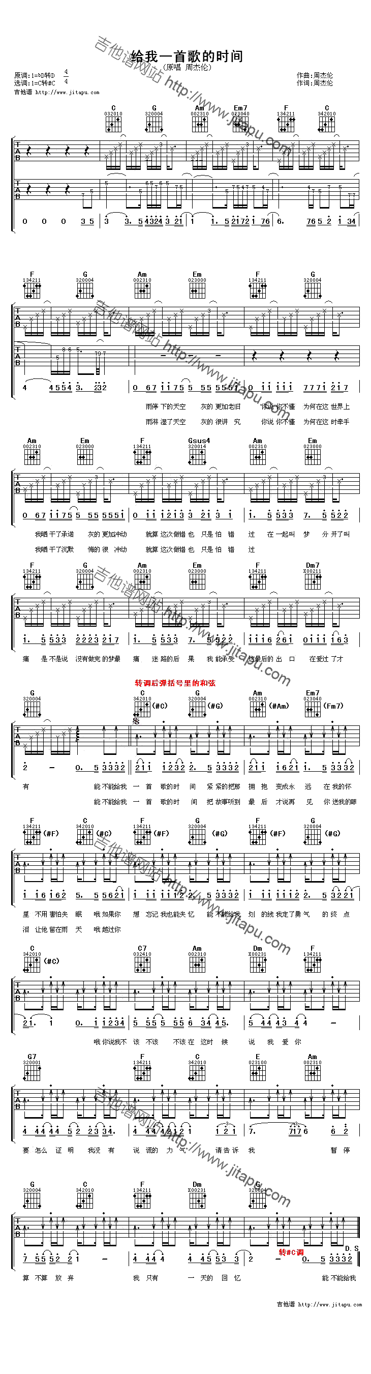 给我一首歌的时间 六线谱 简谱