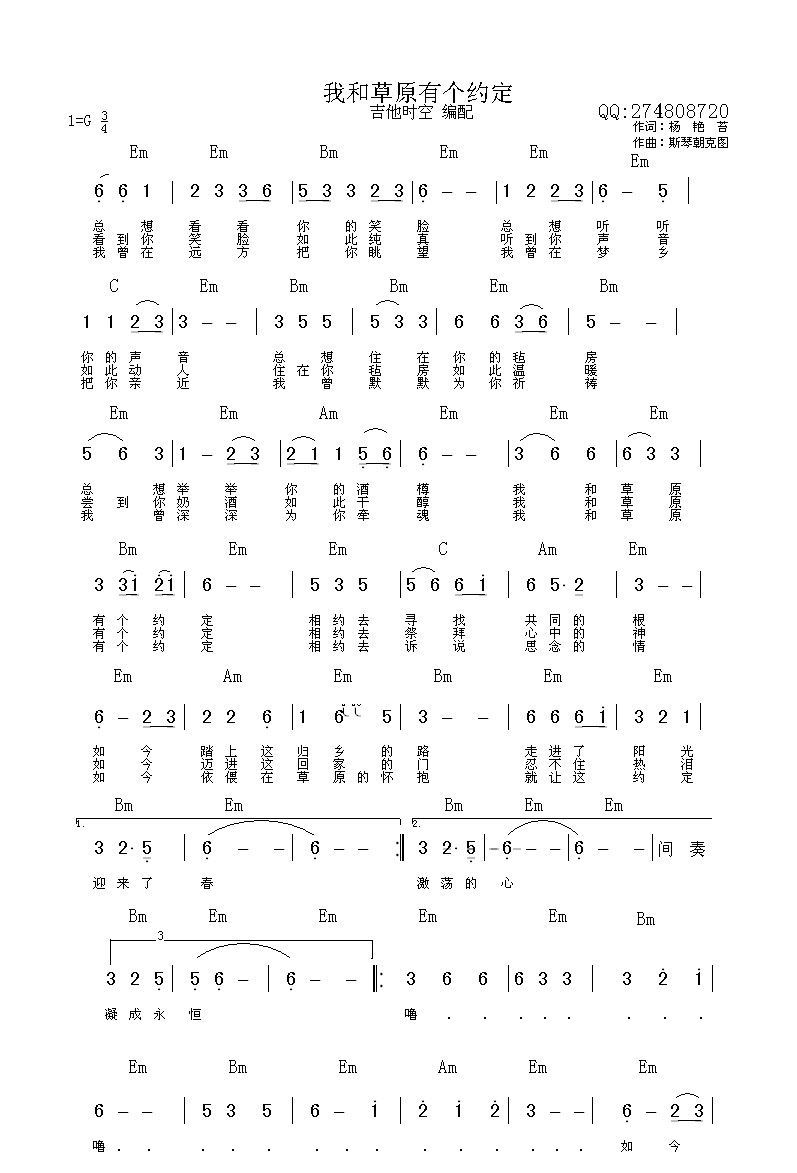 我和草原有个约定 吉他谱 曲谱