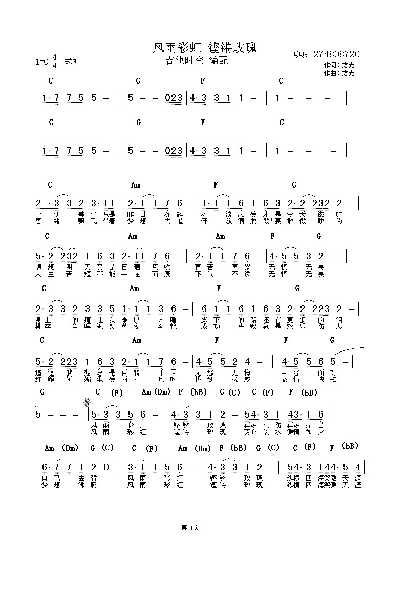 风雨彩虹 铿锵玫瑰 吉他谱 曲谱