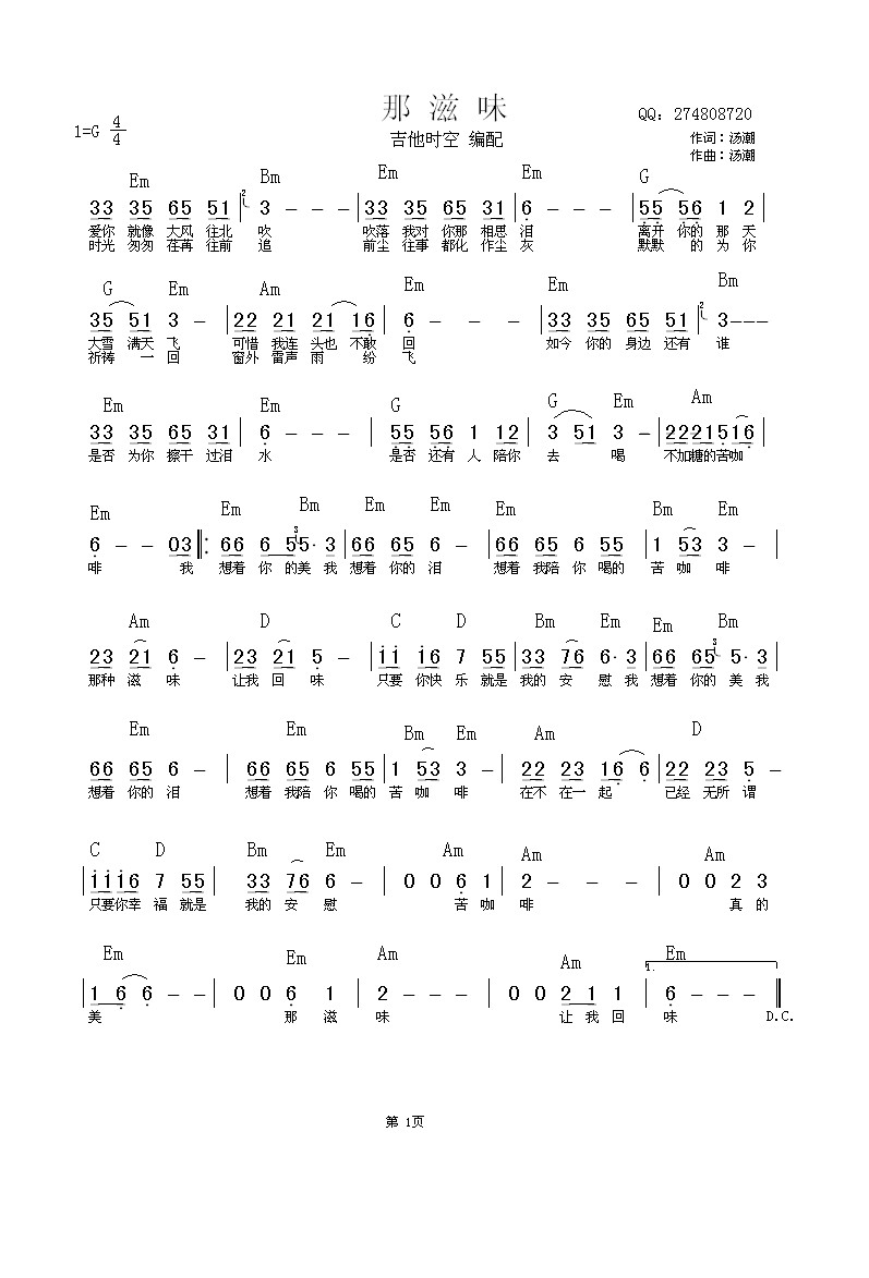 那滋味 吉他谱 曲谱
