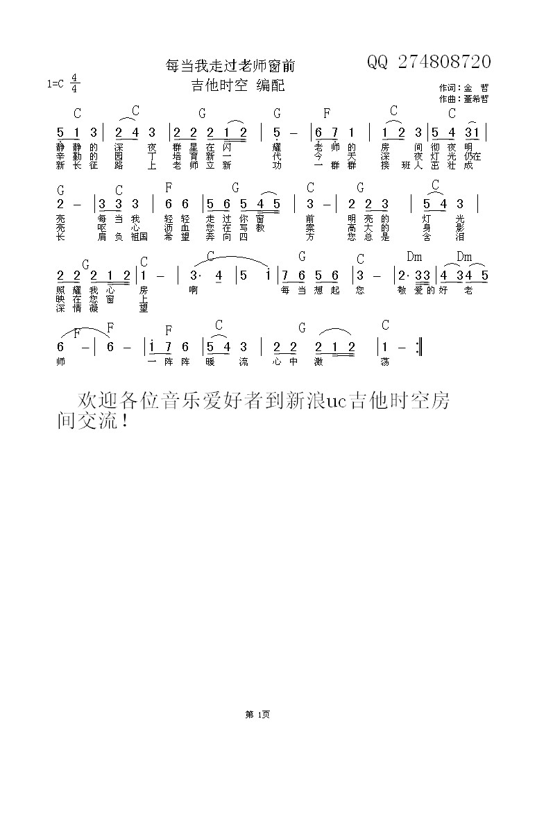 每当我走过老师窗前 吉他谱 曲谱