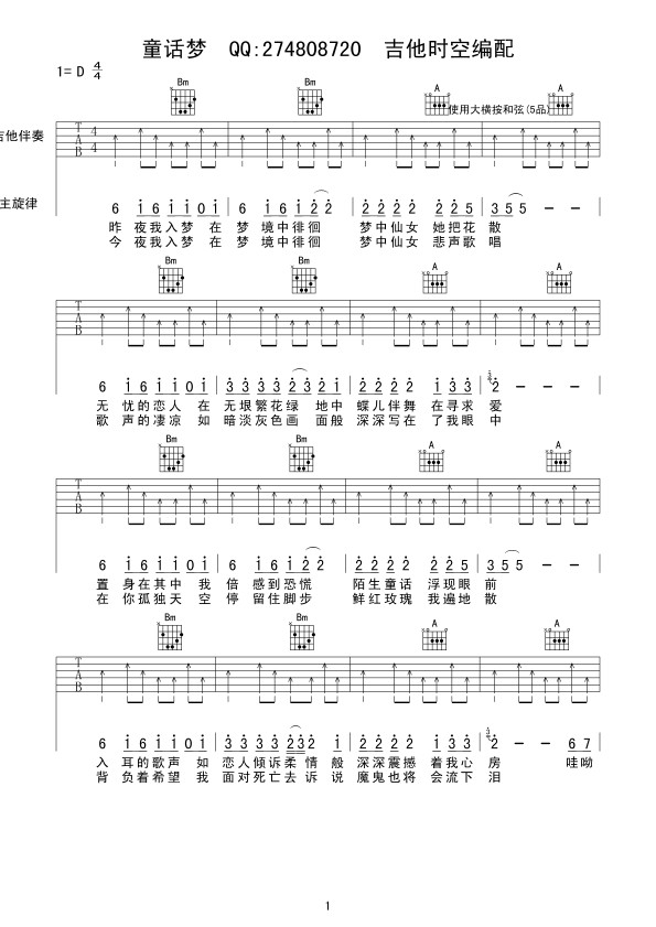 童话梦 吉他谱 曲谱