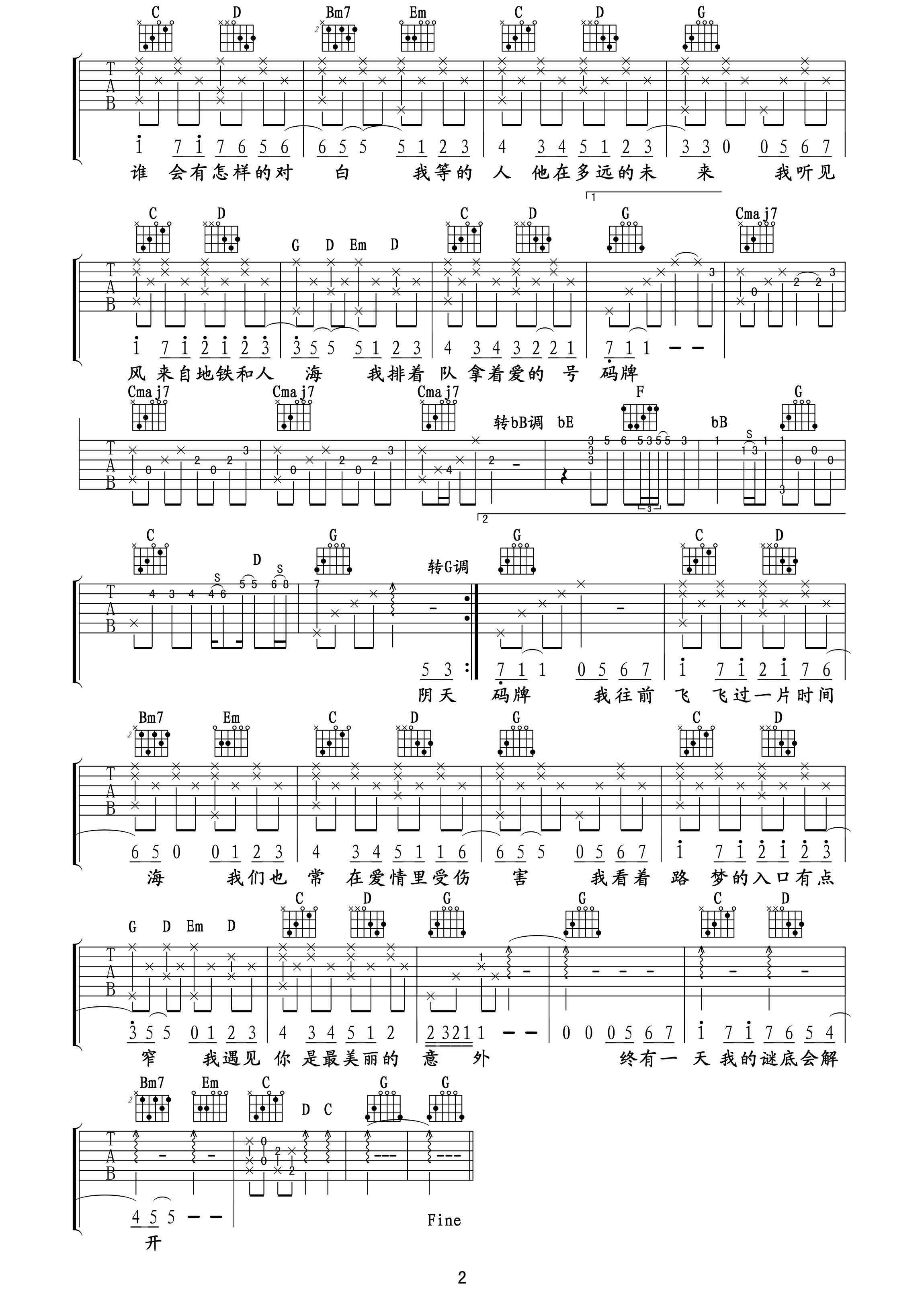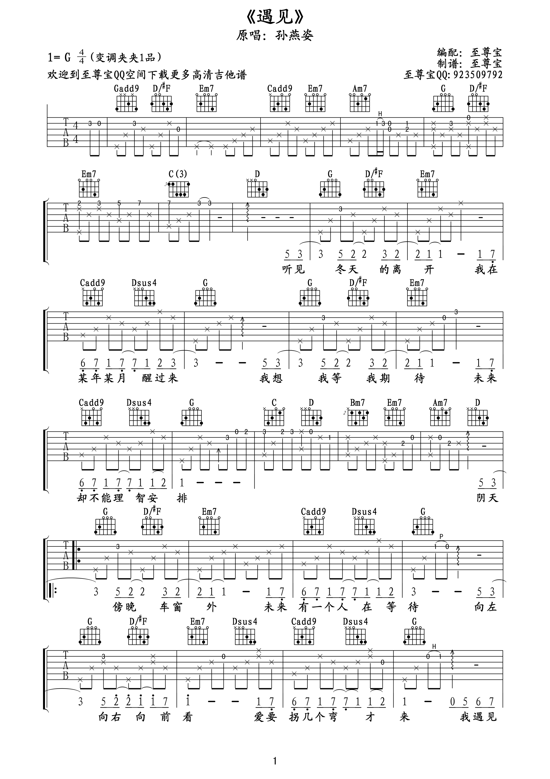 遇见 吉他谱 六线谱