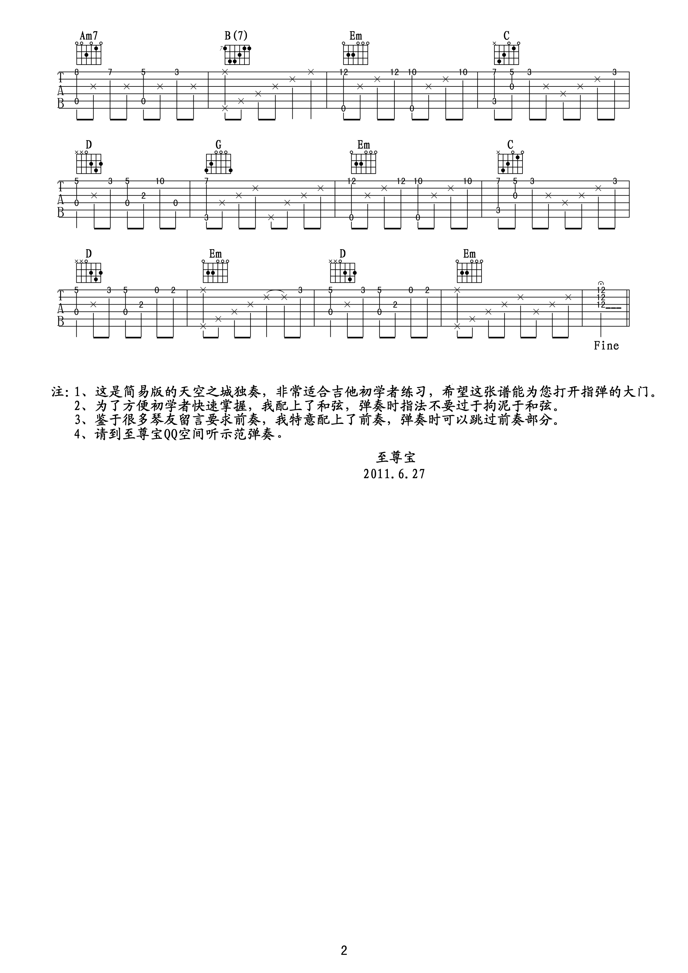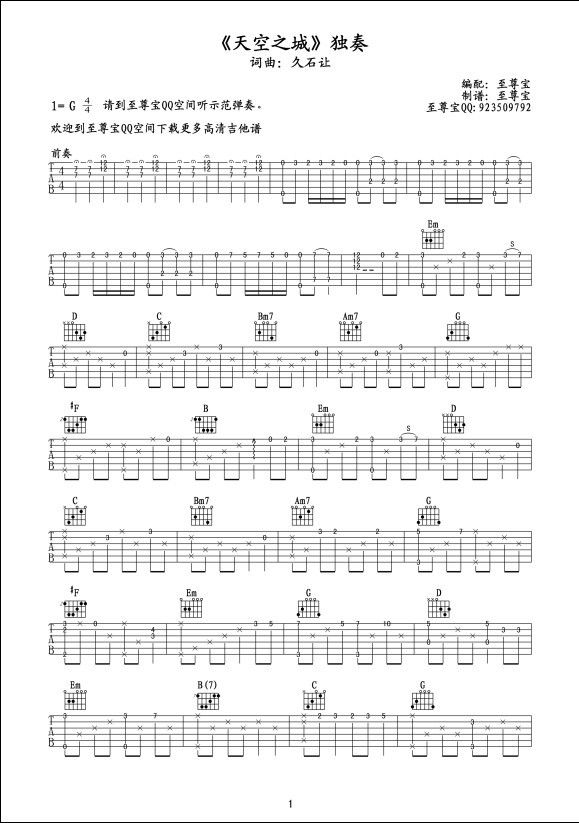 天空之城 吉他谱 六线谱
