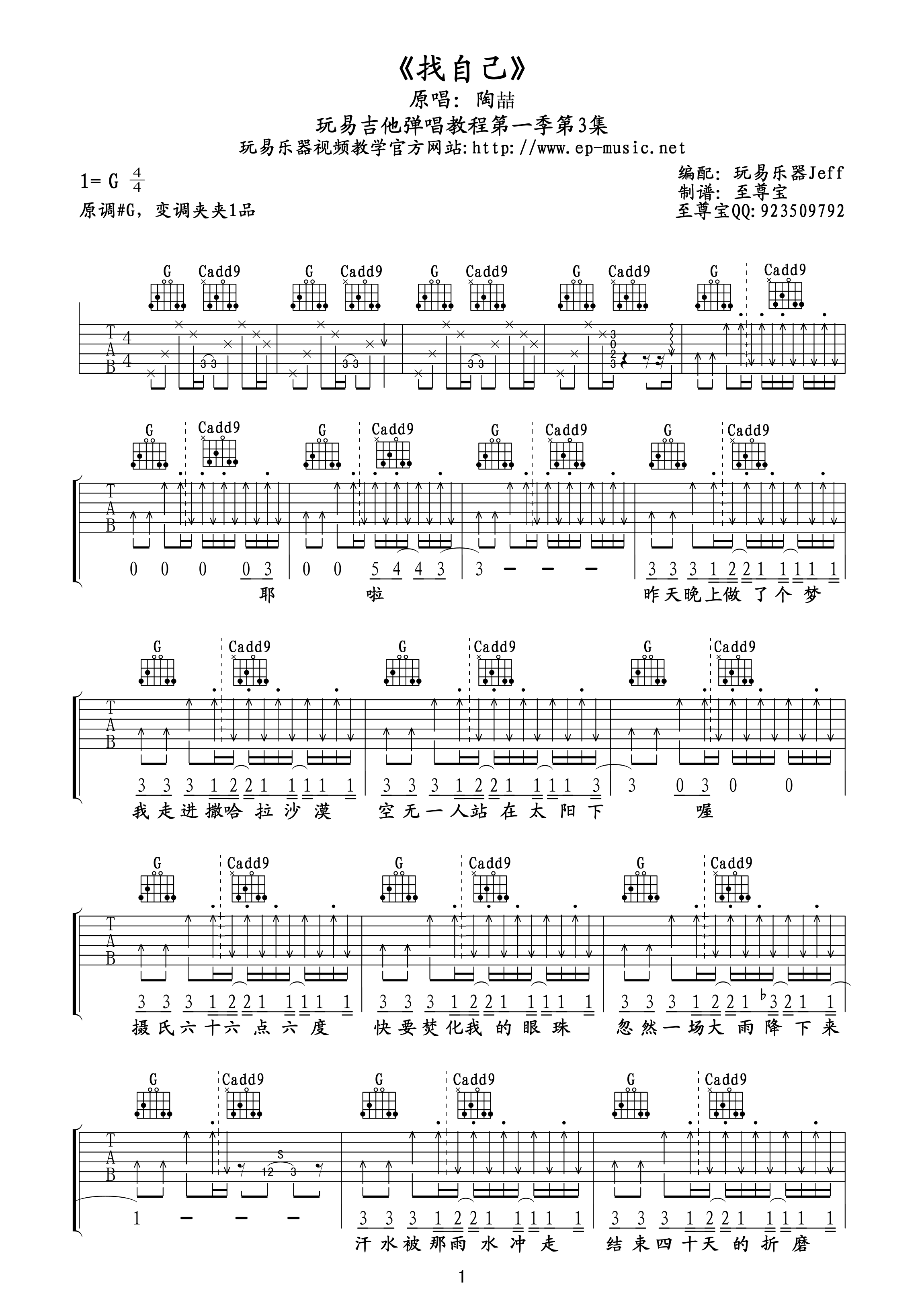 找自己 吉他谱 六线谱