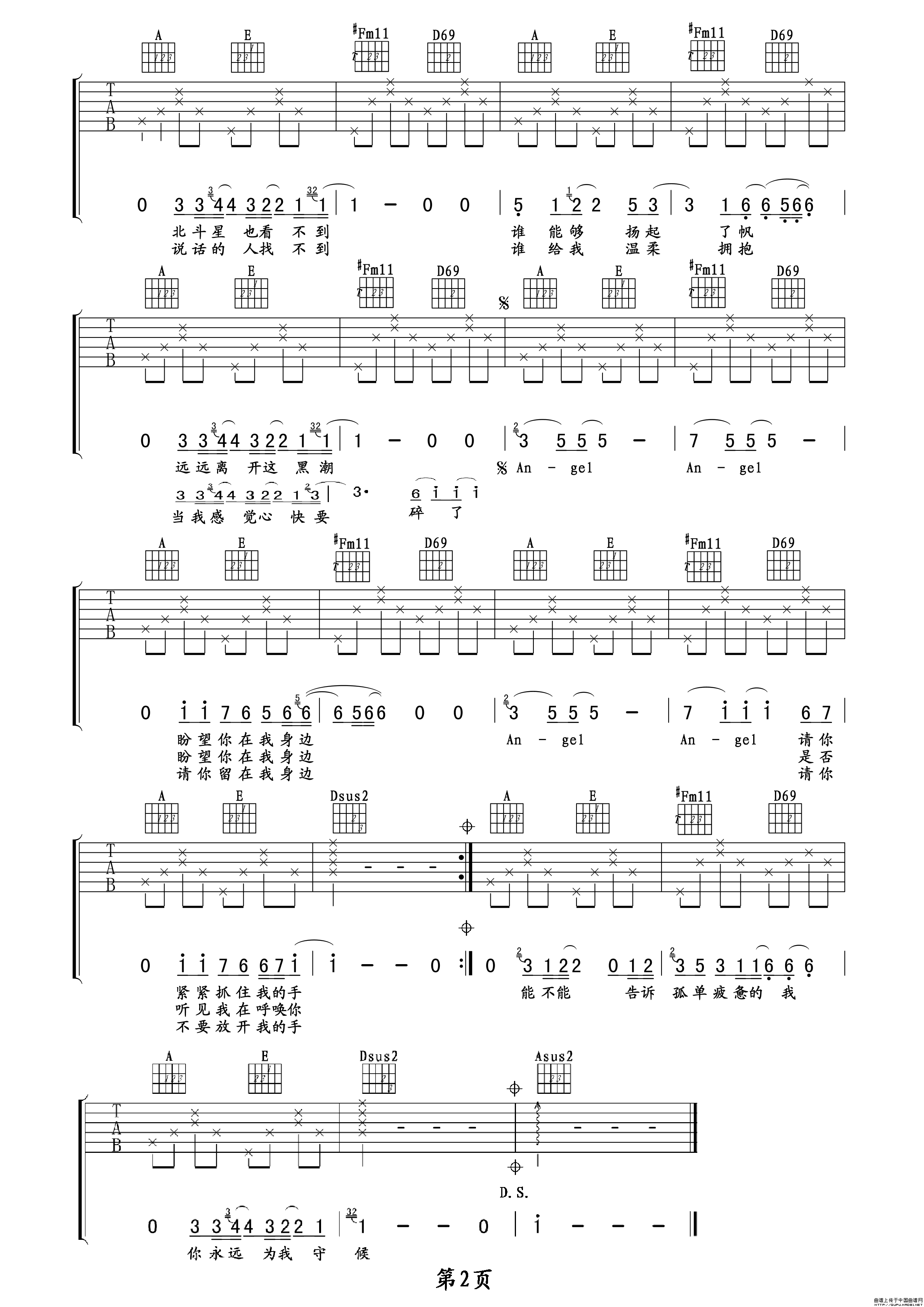 Angel 吉他谱 六线谱
