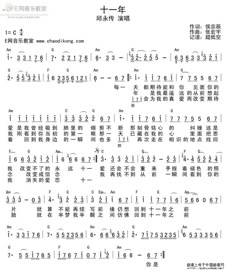 十一年 吉他谱 六线谱