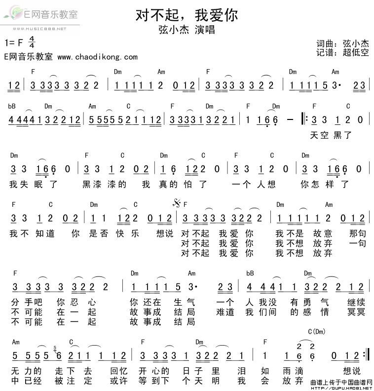 对不起我爱你 吉他谱 六线谱