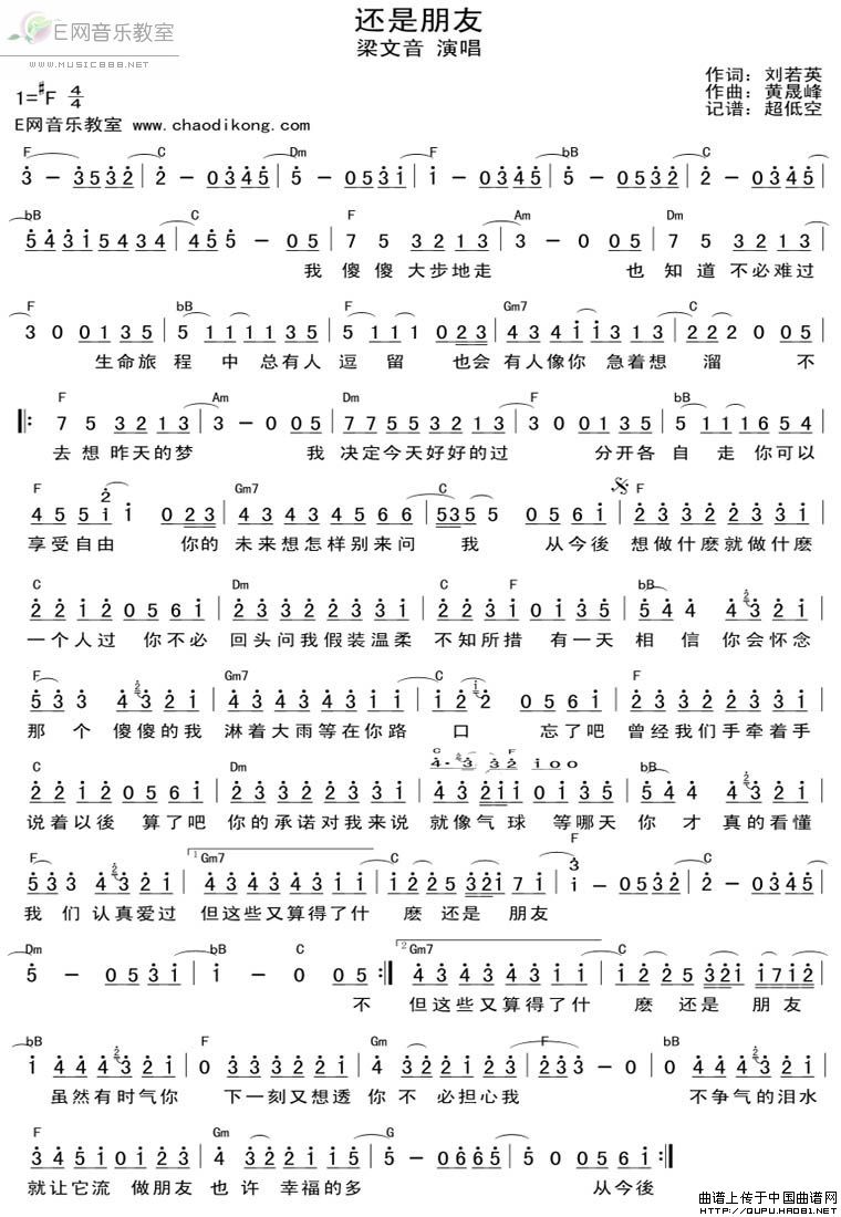 还是朋友 吉他谱 六线谱