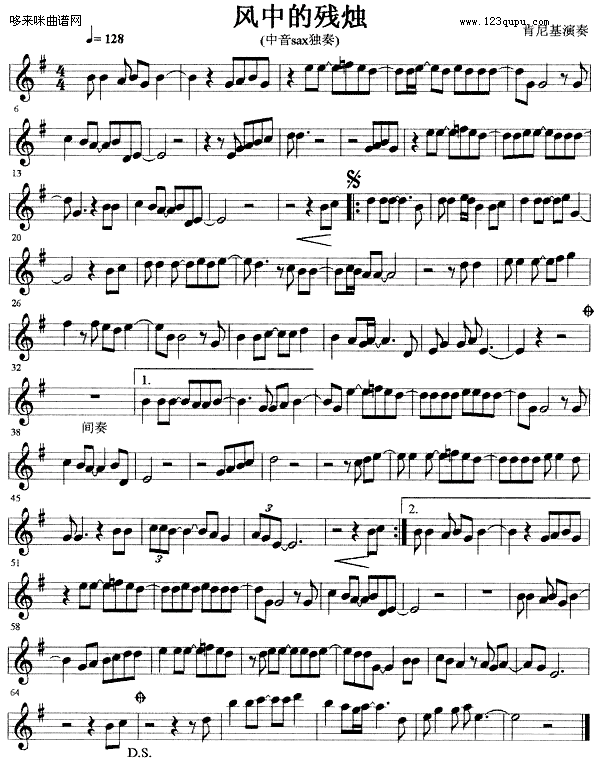 风中的残烛 萨克斯谱