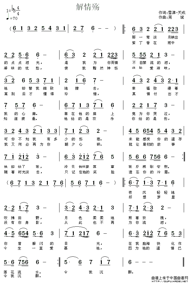 解情殇 简谱 曲谱 歌词