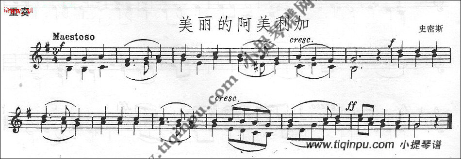 美丽的阿美利加 五线谱 小提琴谱