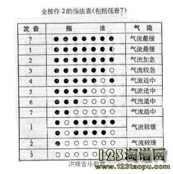 葫芦丝巴乌常用指法表
