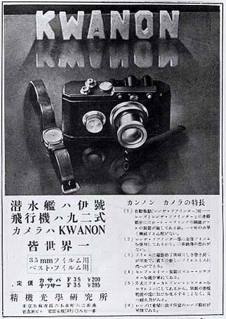 国产35mm测距联动相机的试做机“KWANON=观音”的广告刊载在《朝日相机》杂志上。 此广告于1934年6月由佳能公司的前身-精机光学研究所发布。精机光学研究所已开始生产由吉田五郎(1900-1993)构思的KWANON。 当吉田正在为制造日本一流的35mm相机的梦想努力时,德国的徕卡和康太时公司已经确立了在35mm高端相机领域的地位。