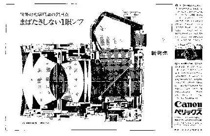 佳能第一款带TTL测光的35mm单反相机。采用仅20/1000mm的超薄半透明绝缘片作为固定镜片。因为没有镜片黑屏现象,因此用户可以在曝光瞬间看到拍摄的图像。