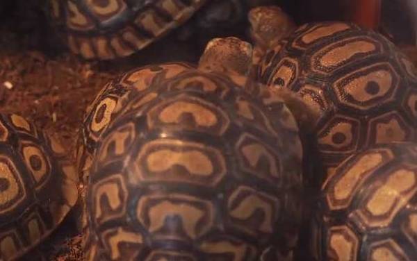 1、环境:豹龟喜栖息在半干燥带荆棘的草原上,炎热的季节会夏眠,寒冷的季节会冬眠,常躲藏在豺、狐狸、食蚁兽等挖掘的洞穴中。