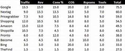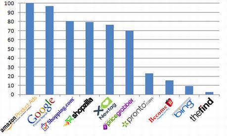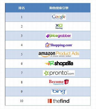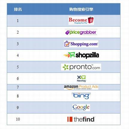 最后的计算结果显示Google综合排名第一,Nextag 和Pricegrabber紧随其后,Shopping.com 和亚马逊分列第四和第五位。