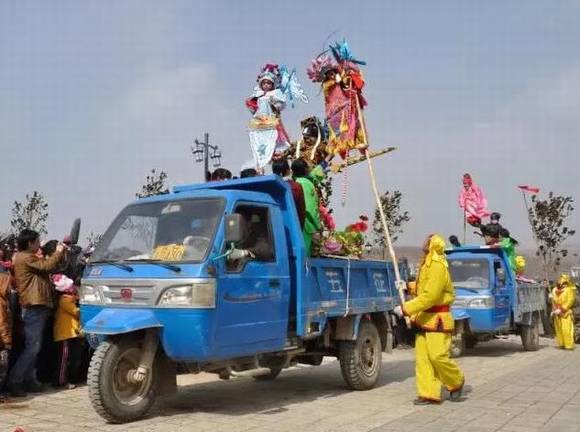 表演的节目有舞狮子,耍长龙,弄棍棒,真是精彩绝伦,眼花缭乱。更多的演员则脚踩高跷,扮成神话故事、经典戏曲中的人物,首尾相衔,围着“舞台”,随着鼓点的节拍,乐器的韵律,边唱边扭,边扭边唱。队列中有大闹天宫的孙悟空,脚踩风火轮的哪吒;有倒骑毛驴的张果老,飞舞奔月的嫦娥;有裂目捉鬼的钟馗,判阳断阴的包公;有手持红绳的月老,出塞和亲的昭君;也有英武义气的武松,妖媚夺人的潘金莲。真是天上人间风云际会,使人恍如隔世。常有剽悍的男儿,穿红带绿,扮成柔美的女子;也有苗条的女性,一脸重彩,扮成赳赳武夫。人们纵情地唱,忘情地扭,这是乡间人一年中最风光、最得意、最放达、最痴情的时刻。