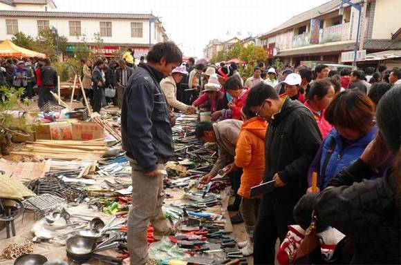 现在的棒棒会比起以往更加丰富起来,有了花草树桩,还有人们自制的小弓箭,竹制的剑,新捆成的竹扫帚,篾签编的筐,背箩和簸箕。当然,最多的还是传统的斧头把,锤子把,锄头棒,拖把棍,吹火筒和各式的竹刷子,马笼头,鸡笼,犁,桶,耙。淳朴的纳西族人们还在这天买卖棺材板,似乎这个神奇的民族并不避讳提及死亡,让人们不得不佩服他们。