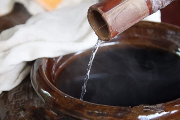 五、蒸馏:用白酒蒸馏设备,开头要旺火猛攻,中间保持火温,再用旺火蒸馏,使料自始至终全部蒸出酒。成品的酒度为50-55度口感佳,色白、气香、味酵。