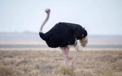 鸵鸟性情机警而多疑,听觉、视觉都很灵敏。鸵鸟的叫声响亮而重浊,如同狮吼一般,可以吓退一部分对其有图的动物。