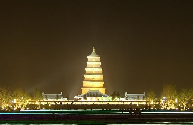 As the symbol of the old-line Xian, Big Wild Goose Pagoda is a well-preserved ancient building and a holy place for Buddhists. It is located in the southern suburb of Xian City, about 4 kilometers (2.49 miles) from the downtown of the city. Standing in the Da Ci'en Temple complex, it attracts numerous visitors for its fame in the Buddhist religion, its simple but appealing style of construction, and its new square in front of the temple. It is rated as a National Key Cultural Relic Preserve as well as an AAAA Tourist Attraction.