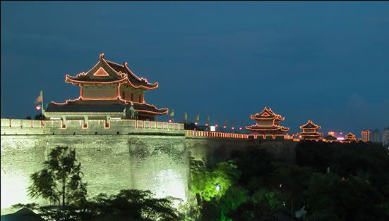 Since the ancient weapons did not have the power to break through a wall and the only way for an enemy to enter the city was by attacking the gate of the city wall. This is why complicated gate structures were built within the wall. In Xian, the city wall includes four gates and they are respectively named as Changle (meaning eternal joy) in the east, Anding (harmony peace) in the west, Yongning (eternal peace) in the south and Anyuan (forever harmony) in the north. The south gate, Yongning, is the most beautifully decorated one. It is very near to the Bell Tower, center of the city. Important greeting ceremonies organized by the Provincial Government are usually held in the south gate square.