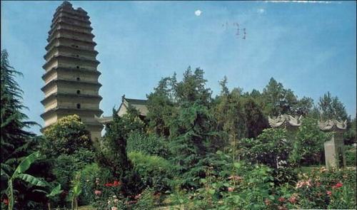 小雁塔は西安城から南へ1kmの薦福寺内にあり,典型的な 密檐式 の仏塔である。大雁塔と相輝かせている。塔内には金代(西暦1192年)に鋳造した大鉄鐘があり,音が奇麗に澄んでおり, 神鐘 と呼ばれている。重さ10トンで,上には。皇帝万歳,臣佐千秋,国泰民安,法輪常転 という縁起のよい言葉が彫られている。小雁塔は,707年に創建され,15階あり,高さ45mで,当時の宮人の献金で建てたものだと言われている。