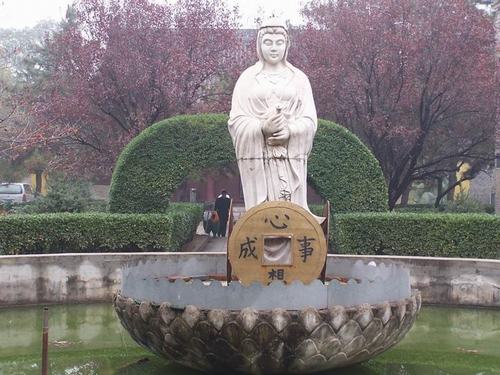 水陸庵は藍田県の東10キロ普化鎮王順山の麓にあります。三面は水、形は孤島のようで、傍には緑豊かな山が聳え、周囲には水が流れる、そのために水陸庵という名がついた。民間の言い伝えによると唐時代の建築様式。庵の建築様式は、一般的な仏教寺に類似し、前面は5軒山門、南北の両側は各く13間の棟、院の中には3間の中殿、西には5間の大殿、一つの四合頭院庭園を形成している。大殿内は彩色された泥質の壁塑、もっとも人を引き付けるのは、伝説によると唐の時代の著名な彫刻家楊恵の直筆である。
