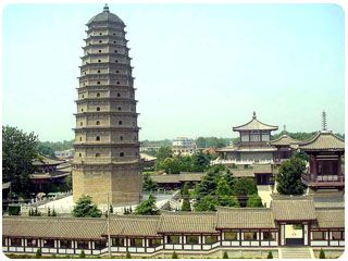 세계에서 유일하게 보존된 석가모니 불지사리를 보존하고 있는 유명한 사원으로서 동한시기에 설립되였으며 서안시에서 약