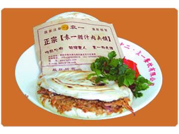 육협막- ( 肉夾馍 食+莫 진빵 막 ) ( 러우쟈머)-길거리 포장마차에서만 판매. 구운 빵에 고기를 다져 넣고 먹는 빵이다. 이것은 섬서 지방의 독특한 간식이다. 이를테면 섬서식 햄버거로,