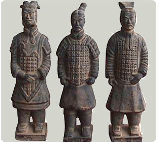 진용은 진시황병마용을 본따 만든 도기 인형이다. 진시황 병마용 박물관 앞에서 구입할 수 있으나 정교하게 만들어지지 않아 쉽게 부서지는 단점이 있다.