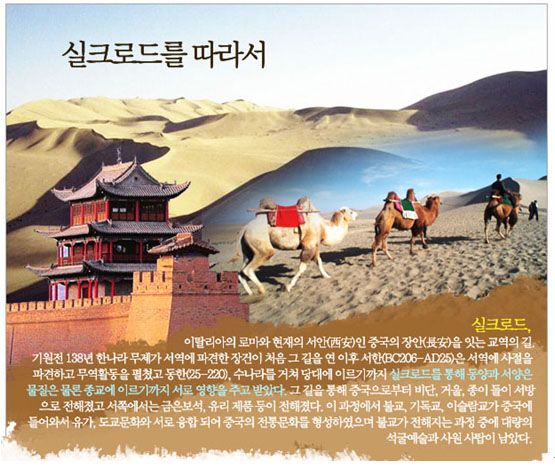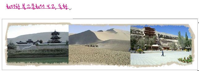 돈황은 서역으로 출발하는 실크로드의 출발점이자 동서의 문화가 최초로 교류한 장소였다. 이곳에서