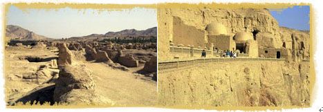 석굴인 막고굴(莫高窟)을 비롯해 많은 벽화와 불상이 남아있다. 길이 1.6km의 바위산을 파서 만든 493개의 동굴에 어마어마한 규모의 프레스코화와 수많은 채색 조각들이 남아있는 막고굴은 세계에서