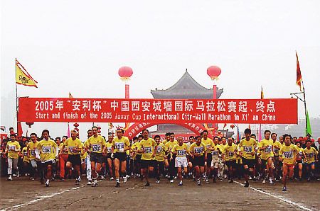 Международный марафонский бег Китая вокруг городской стены Сиань был назван “Наиболее особенный и привлекательный в мире марафонский бег”, от 1993 года до сих пор марафонский бег уже удачно организован 11 раз, всего 20 тысяч игроков из пятидесяти стран участвовали в марафонском беге. Бежит на самой совершенной в мире городской стене, это наиболее совершенное объединение физкультуры и культуры.